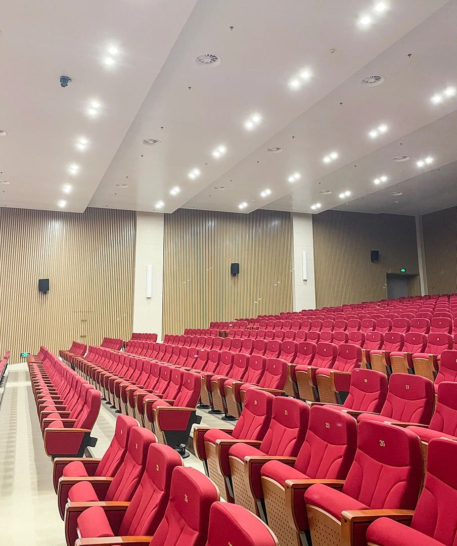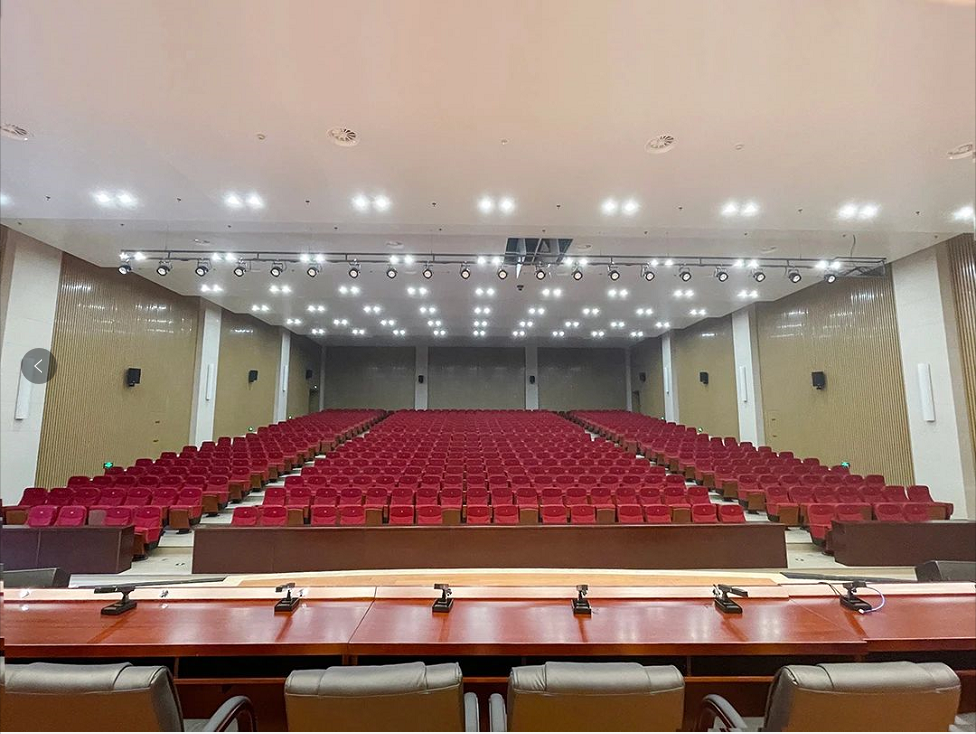 大型多功能報告廳可容納600余人,空間較大。要求多功能報告廳可滿足各類培訓、學術報告、研討交流會等大中型會議及大中型文藝演出等多種使用需求,能滿足會議討論、發言等語言擴聲使用功能,確保整套擴聲系統聲音飽滿通透,人聲清晰自然。