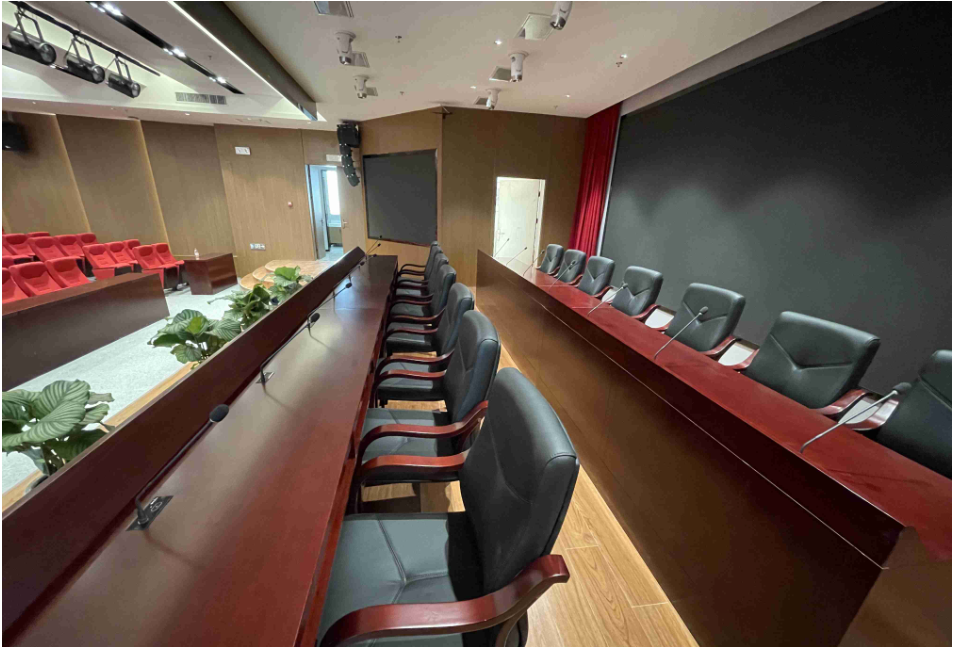 陜西渭南會議中心經常舉辦各類大型會議,會議頻繁召開,對會議設備提出了更高的要求。HUAIN華音根據大型階梯報告廳和小型會議室的使用需求,選擇全數字嵌入式會議系統進行搭建使用。全數字嵌入式會議單元HY-6120系列根據桌面尺寸量身定制,全鋁合金面板內嵌觸控亞克力面板,具備防水防塵功能;支持數量限制、先進先出、后進先出、主席允許、自由討論五種會議模式;拾音有效距離可達50-60cm,信號穩定,發言無噪音電流影響。