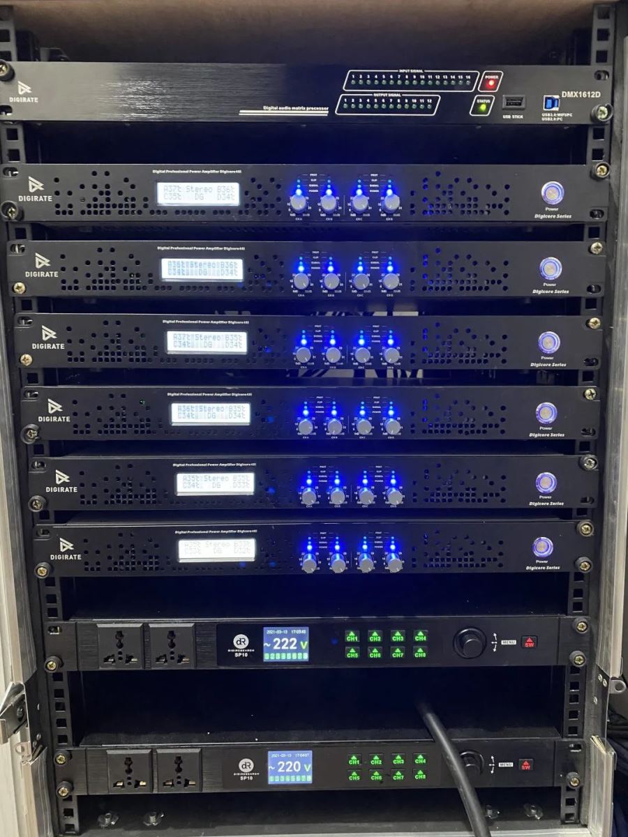 音頻處理系統(tǒng)采用了DIGIRATE(迪吉瑞)數(shù)字音頻處理器:DMX1612D系列數(shù)字功放DIGICORE系列以及大量樂器話筒