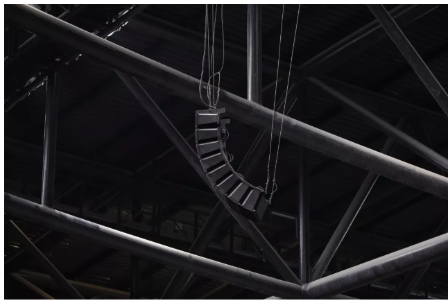 由于馬道在膜上方,揚聲器沒有固定安裝點,因此安裝和檢修非常困難。另外,其上下擺動的幅度達(dá)到1.5米以上,為整個擴(kuò)聲解決方案設(shè)計增加了很多難度。