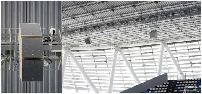 經(jīng)過再三研究、博世團(tuán)隊借鑒了之前給倫敦碗提供的安裝方式,邀請了專業(yè)的設(shè)計人員在每個鎖頭上設(shè)計了一個安裝點并安裝滑輪,通過卷揚機把揚聲器卷上去,當(dāng)檢修時則采用同樣的方式將揚聲器卸下,攻克了吊掛技術(shù)難點。