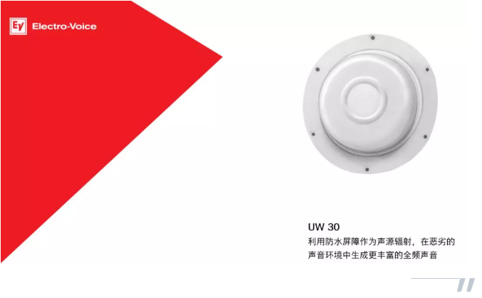 考慮到潛游以及水下花樣游泳的訓(xùn)練和表演,我們還在游泳池底部選用了EV旗下UW30系列水下?lián)P聲器,確保在水中的人可以清晰地聽到音樂以及岸上人員通過麥克風(fēng)傳遞的信息,而不需要另外的接收器。