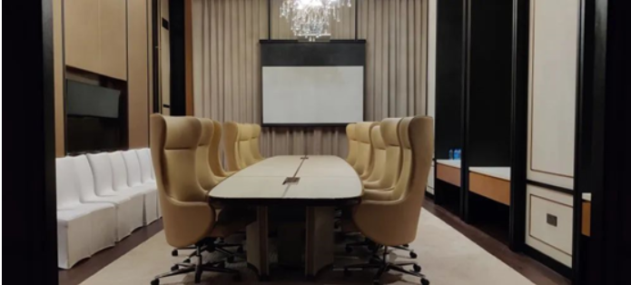 酒店一樓設(shè)有大會(huì)議室一間、小會(huì)議室兩間、董事會(huì)議室一間。擴(kuò)聲采用了EV 6.5寸二分頻吸頂音箱,與Dynacord 數(shù)字系列功放,Roland數(shù)字調(diào)音臺(tái)組合的音頻系統(tǒng),滿足本地會(huì)議和遠(yuǎn)程會(huì)議的使用。會(huì)議室的視頻設(shè)備均采用了EPSON系列高清工程投影機(jī),高分辨率、低失真、低色差、高透光率等出色的性能,將色彩還原到極致。
