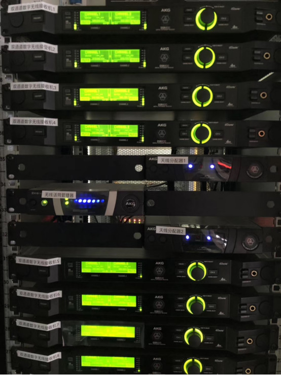 演藝廳舞臺左右兩側(cè)吊掛了各6只EV8寸線陣列覆蓋觀眾席,M15全頻音箱做下拉聲像揚(yáng)聲器,B30超低音在舞臺下的預(yù)留孔洞中,臺唇位置設(shè)置了4只緊湊型的C5同軸揚(yáng)聲器覆蓋前三排觀眾,4只M12多功能揚(yáng)聲器作為舞臺流動返送,全部的音箱都由系統(tǒng)功率放大器PLM12K44驅(qū)動,PLM12K44是一款4通道可遠(yuǎn)程監(jiān)控的DSP功率放大器,內(nèi)置EV的揚(yáng)聲器預(yù)設(shè),便于使用者對揚(yáng)聲器進(jìn)行操控管理。演藝廳的擴(kuò)聲系統(tǒng)還使用了16個通道的AKG DMS800數(shù)字無線系統(tǒng)。