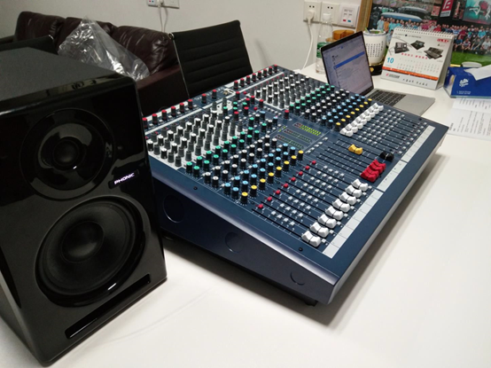 圖14:看了那么久,現(xiàn)在連接起來試聽一下,搭配的是PHONIC 8A黑色鋼琴漆監(jiān)聽音箱,輸入方式選擇了手機線路(插的是平衡話放接口)輸入和電腦USB線直接連接臺子自帶聲卡的數(shù)字輸入兩種傳輸方式。音質(zhì)一如前幾代一樣完美,且聲音也非常干凈,離解析度這么高的監(jiān)聽音箱這么近,沒有聽到噪音,臺子的線路設(shè)計及工藝把控還是不錯的。