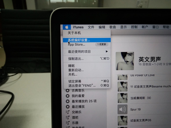 圖16:連接完成后,點擊屏幕左上角??標(biāo)志,選擇系統(tǒng)偏好設(shè)置,點擊進(jìn)入系統(tǒng)偏好設(shè)置界面。