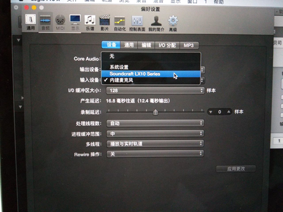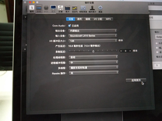 圖26:改好以后需點擊應(yīng)用更改,使更改生效。如果你要用此軟件進(jìn)行錄音回放,那么你的輸出設(shè)備也應(yīng)改為調(diào)音臺輸出。我這里沒用到就沒做更改。