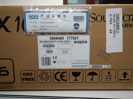 圖3:包裝箱側(cè)面的產(chǎn)品條碼及總代理ACE出具的產(chǎn)品保修卡,請仔細(xì)核對,經(jīng)典產(chǎn)品市面水貨比較多需留意,另目前此款產(chǎn)品的國內(nèi)總經(jīng)銷為廣州市銳聲燈光音響器材有限公司,一家專做國外知名品牌的代理專業(yè)音頻公司。