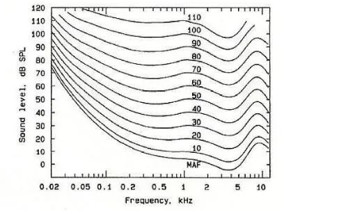 4.人類聽覺系統(tǒng)的等響度曲線(等響曲線)。