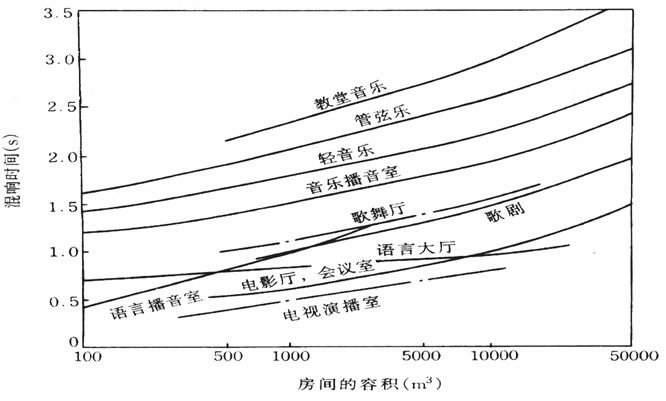 另外,對演出用工程的混響時間的計算還要考慮空場時和觀眾滿場時的區別。