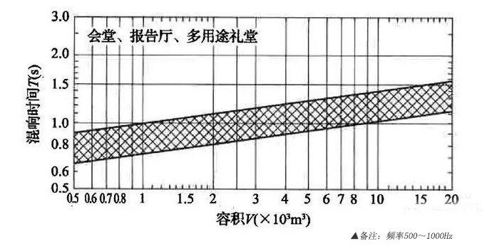 對于不同類型的音響工程,混響時間的要求有所不同;同類型的工程,不同的聲場大小,混響時間的指標也有不同。一般來講,我們可以在500Hz和1000Hz兩個地方計算聲場的混響時間。