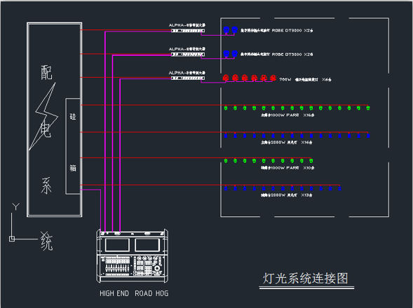 LED數(shù)字聚光燈具同時備多種彩色效果,并適當(dāng)增加電腦搖頭燈具和泡泡機(jī)、煙機(jī)等特效設(shè)備以滿足舞臺表演需求。