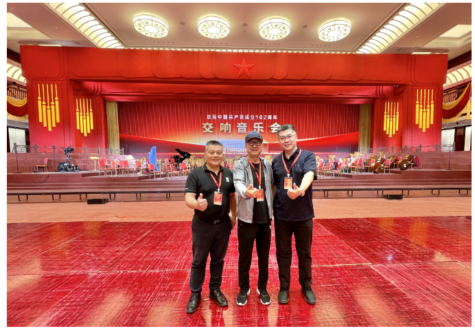 本場音樂會在大合唱《沒有共產黨就沒有新中國》的熱烈氣氛中圓滿落下帷幕。作為慶祝中國共產黨成立102周年的重要慶典活動,本交響音樂會具有重要的政治意義,必須保證演出活動全過程的安全。為此,舞臺設計、燈光視效設計等舞美設計及設備選用方面都必須嚴格遵照相關規范標準的要求,遵循“安全第一”的工作原則,全力消除潛在隱患,確保“零事故”。本次演出圓滿成功,為觀眾奉獻了一場高質量的精神文化盛宴。
