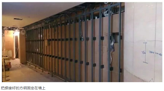 裝模組之前要用不銹鋼包邊,這僅僅是為了好看,也是安裝單位要求的,專門找來了做不銹鋼的師傅來量了尺寸,估算了下他量完鋼結構后加大了5mm吧,為方便能好安裝又能卡死不銹鋼包邊。這里因為屏幕尺寸不大,我們提前安裝的不銹鋼包邊,有時也可以在屏幕安裝完后再安裝不銹鋼包邊,但是要注意的就是底部第一排水平一定要做好。