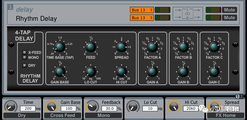 所以50%的feedback設(shè)定,表示每一聲延時信號都將比之前的小6dB。25%的feedback設(shè)定,表示每一聲延時信號都將比之前的小12dB。