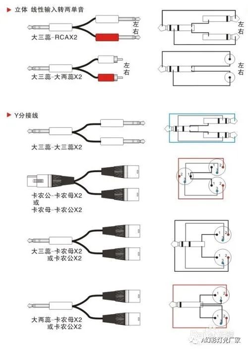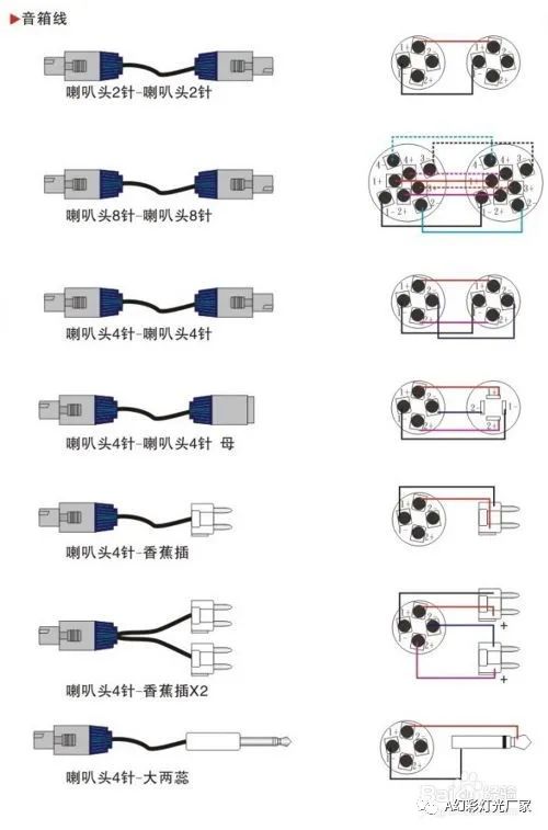 | 專業舞臺燈光音響設備信號線各種接頭接線方式 |