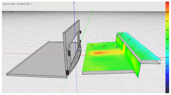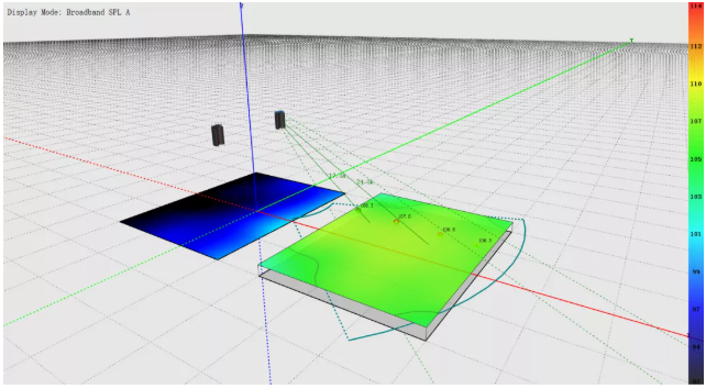 值得一提的是,這次春晚的舞臺(tái)是非常干凈的,無論是模擬預(yù)測,還是實(shí)地測量,都顯示出主擴(kuò)系統(tǒng)對(duì)舞臺(tái)是幾乎沒有干擾的,聲壓級(jí)小且直達(dá)聲少,并且最終的實(shí)際聽感,主擴(kuò)系統(tǒng)對(duì)舞臺(tái)的不良串音是極其微小的。