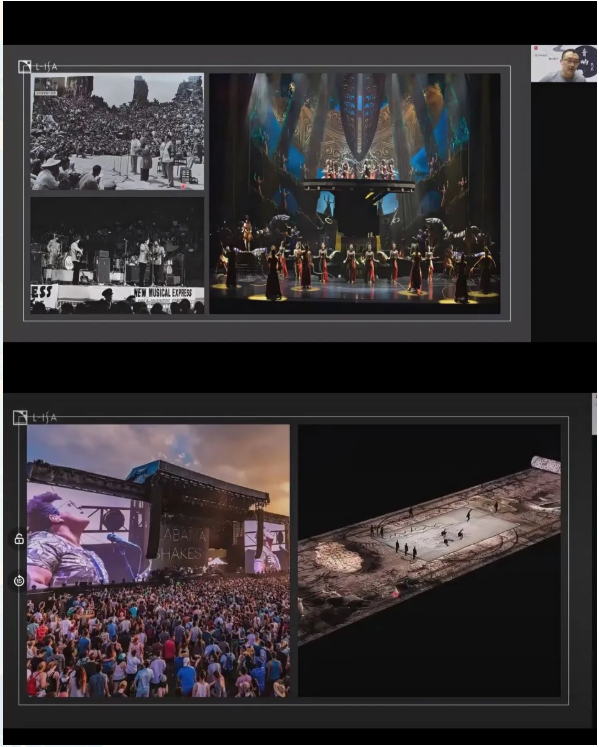 通過摩托車環繞的音效視頻,介紹了主講嘉賓與其團隊如何通過3D科技制造環繞音效,帶給觀眾沉浸式的聽覺體驗。并且講解追蹤器與拾音話筒如何結合實現實景與藝術結合。音響與舞臺、燈光、布景的融合是未來演出的一種趨勢,能帶給觀眾更真切的體會。