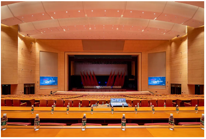 漢廳觀眾席分為兩層,共2350座,其中池座1650座、樓座700座,池座部分均帶有會議桌。與傳統劇場劇院相比,漢廳面積巨大,其臺口到觀眾席后排進深約41.4m,同時,觀眾席呈扇形展開,后部最寬部分約50.2m。從聲學角度來說,如此寬度和進深的觀眾席空間,對于聲場的均勻覆蓋而言具有非常大的挑戰。由于漢廳是高端演藝及重要會議場所,因此其對聲音的呈現有著極高的要求,在滿足設備的安全性與穩定性的基礎上還需要保證足夠的聲壓級、優秀的音質以及良好的語言清晰度。與此同時,擴聲系統還要具備:
